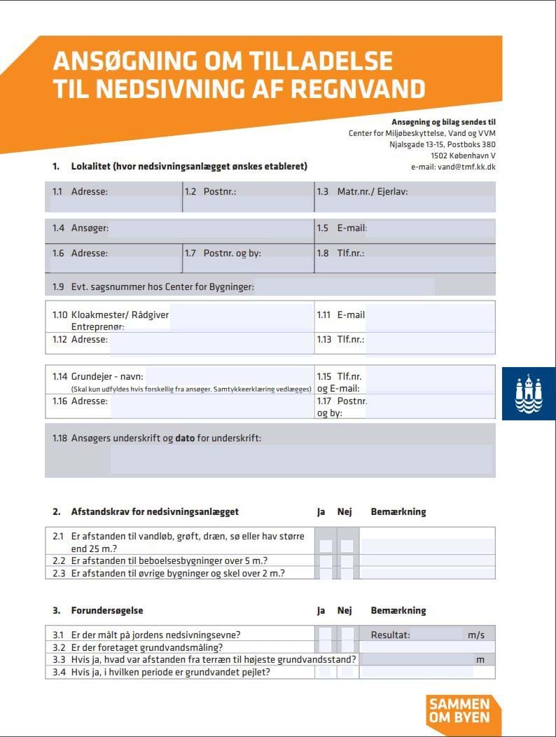 Du kan søge om nedsivningstilladelse og udledningstilladelse på kommunens hjemmeside KK.DK/LAR.