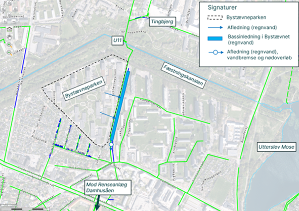 Teknik- og Miljøudvalget vedtog med tillæg 2024 til Spildevandsplan 2018, at Bystævneparken skal separatkloakeres med udledning af regnvandet til Fæstningskanalen efter rensning, i forbindelse med den kommende udvikling af området. Placeringer af de kommende anlæg til forsinkelse og rensning af regnvand fra området skulle indpasses i lokalplanarbejdet og beskrives i efterfølgende tillæg til spildevandsplanen.